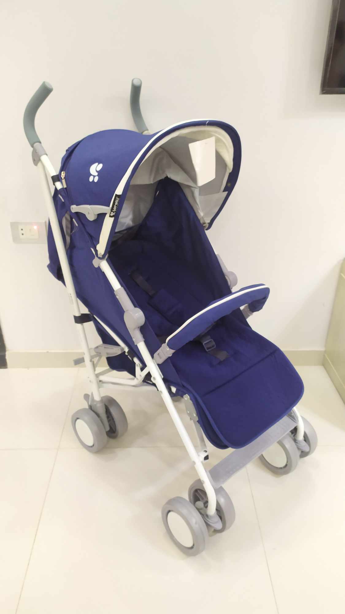 ماركة لوريلي عكاز مستويات متعددة للضهر ومستويات للرجل والشمسية كبيرة بتغطي العربية كلها