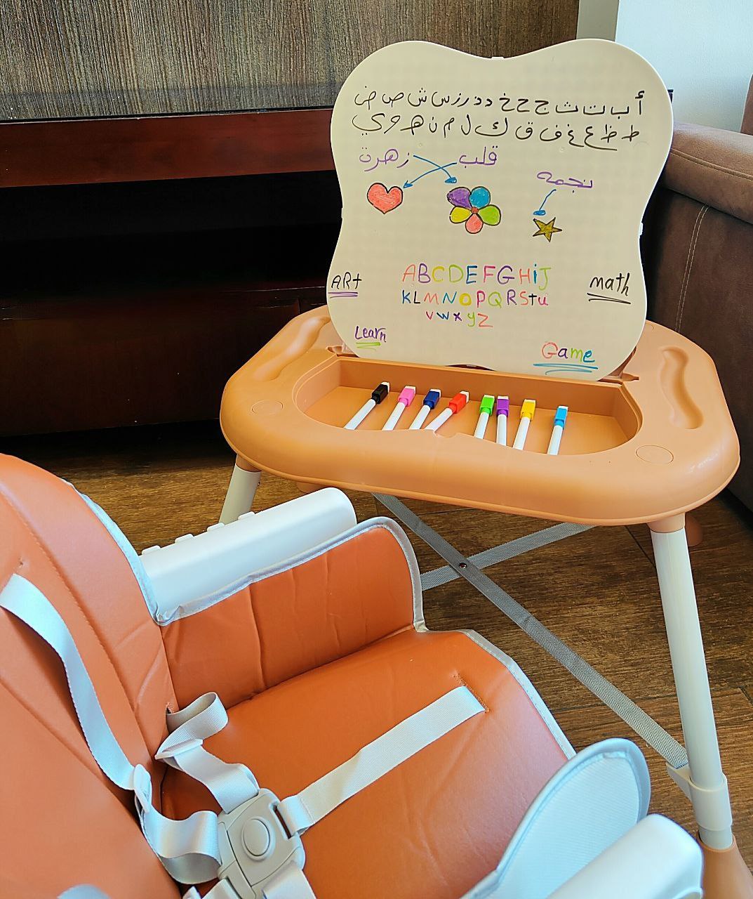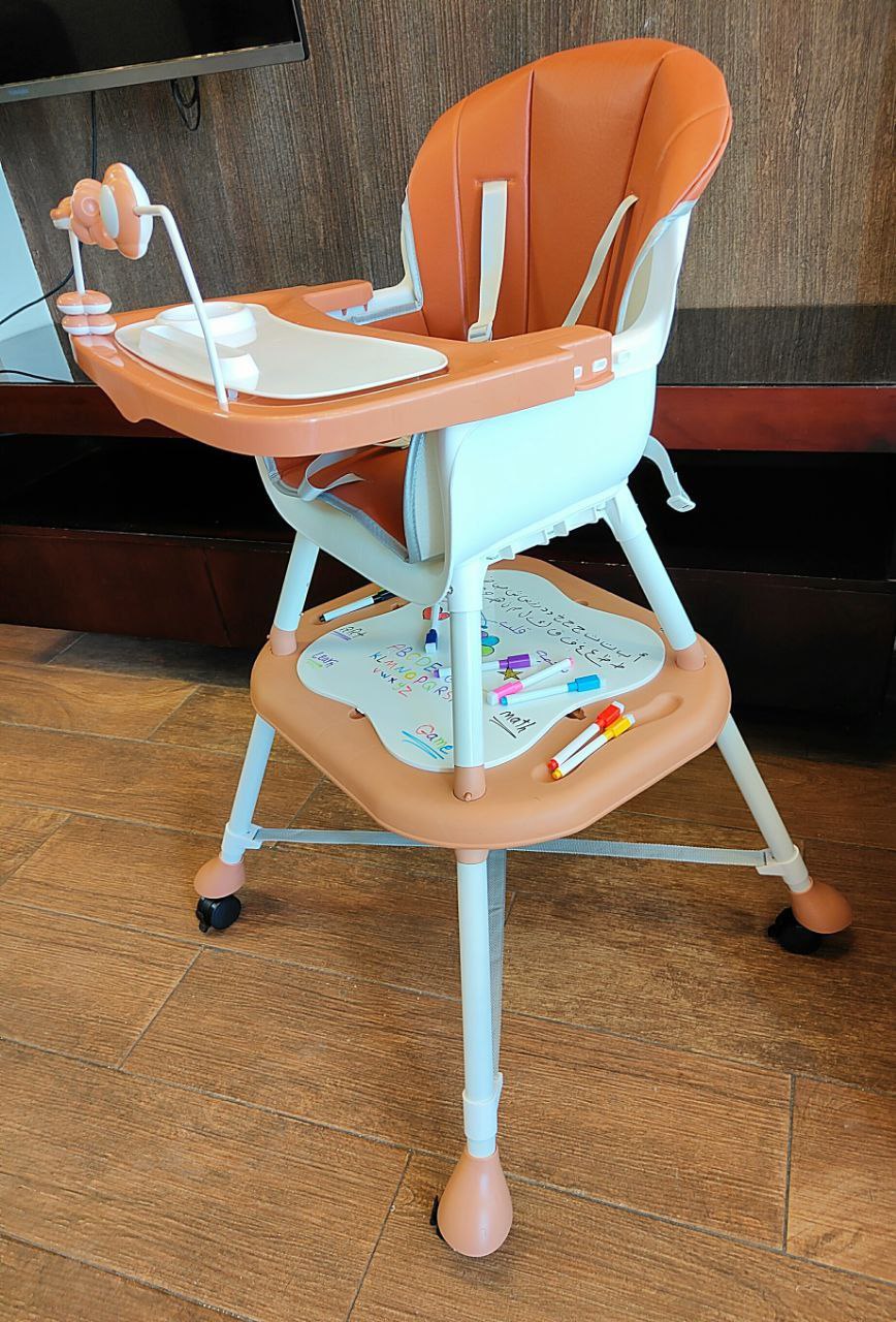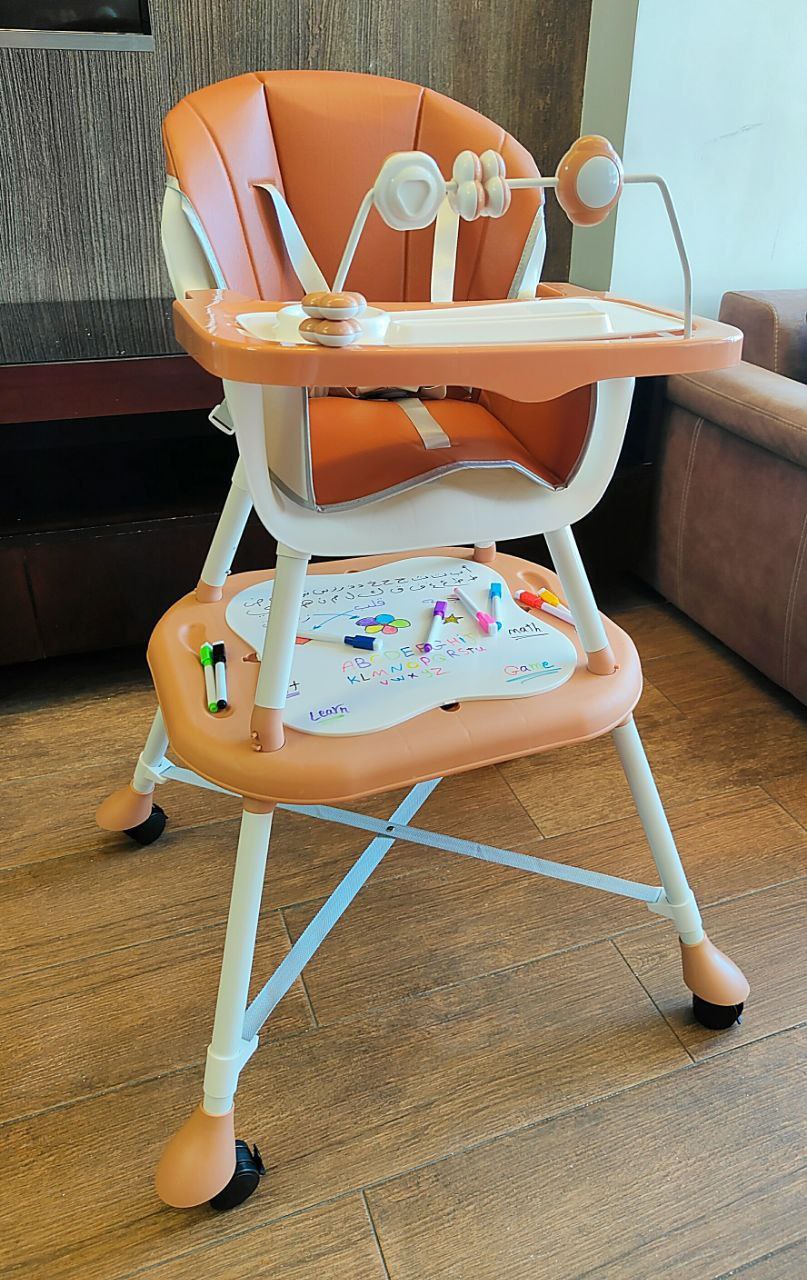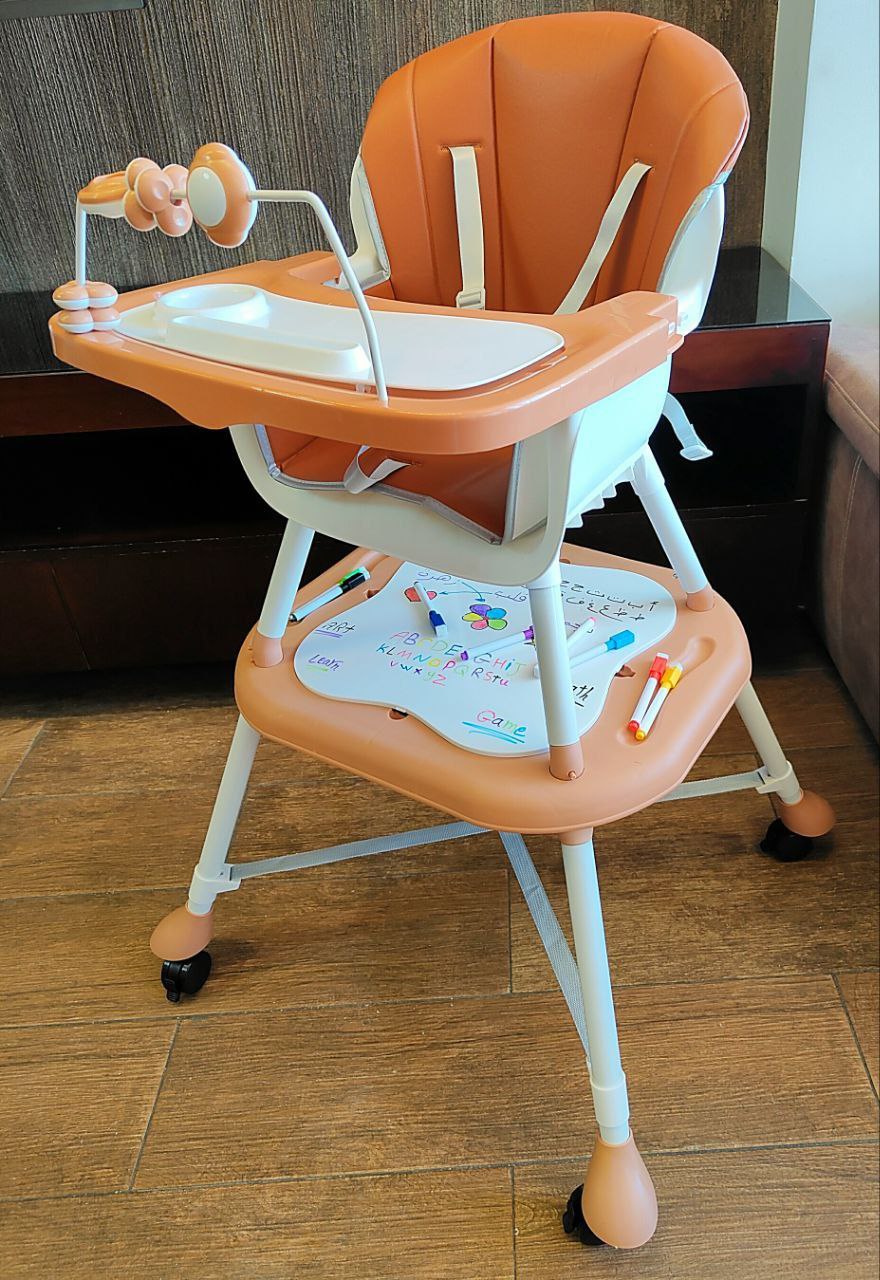 كرسي طعام ببار العاب وعجل ومستويات وطرابيزة للرسم