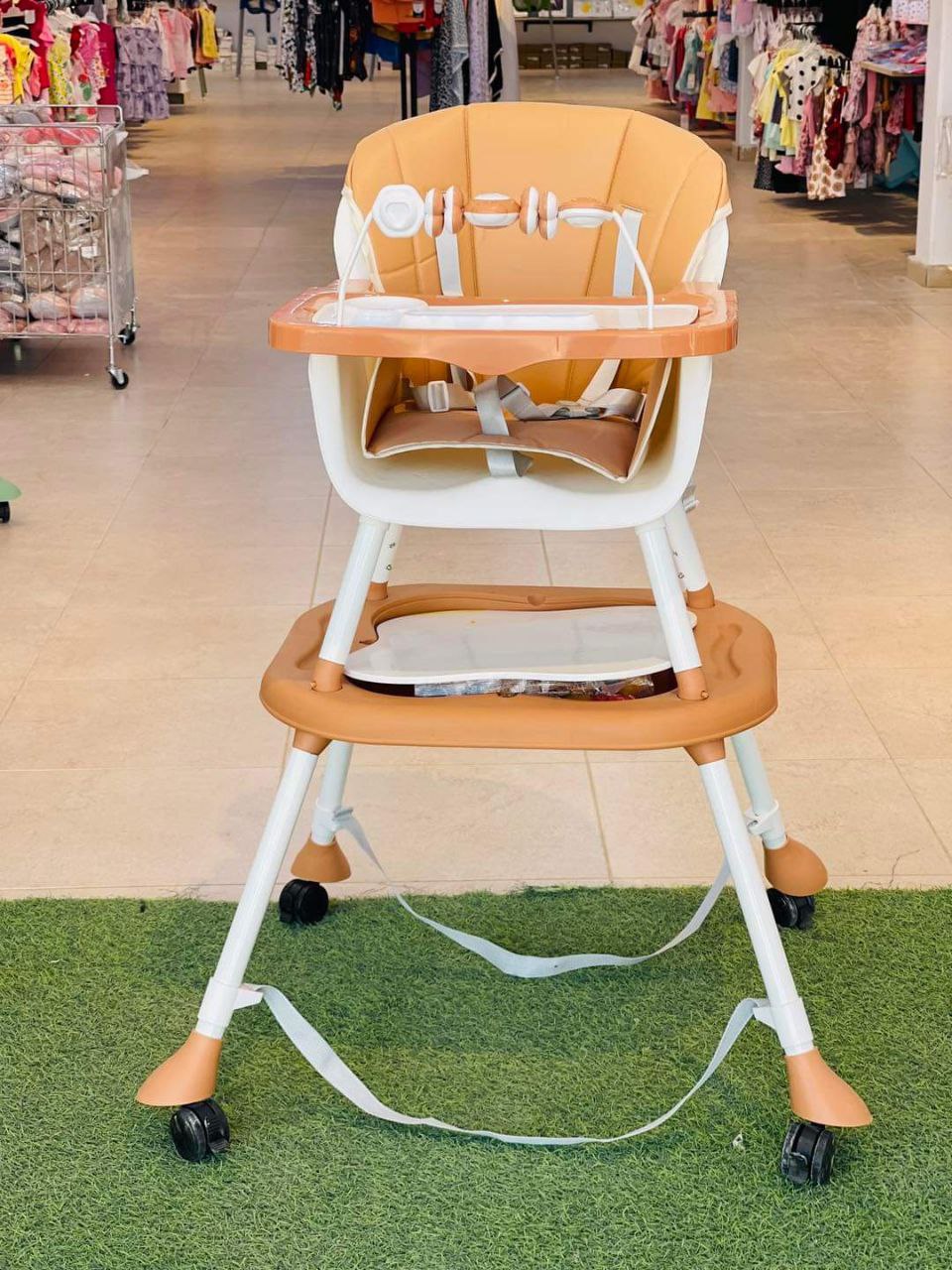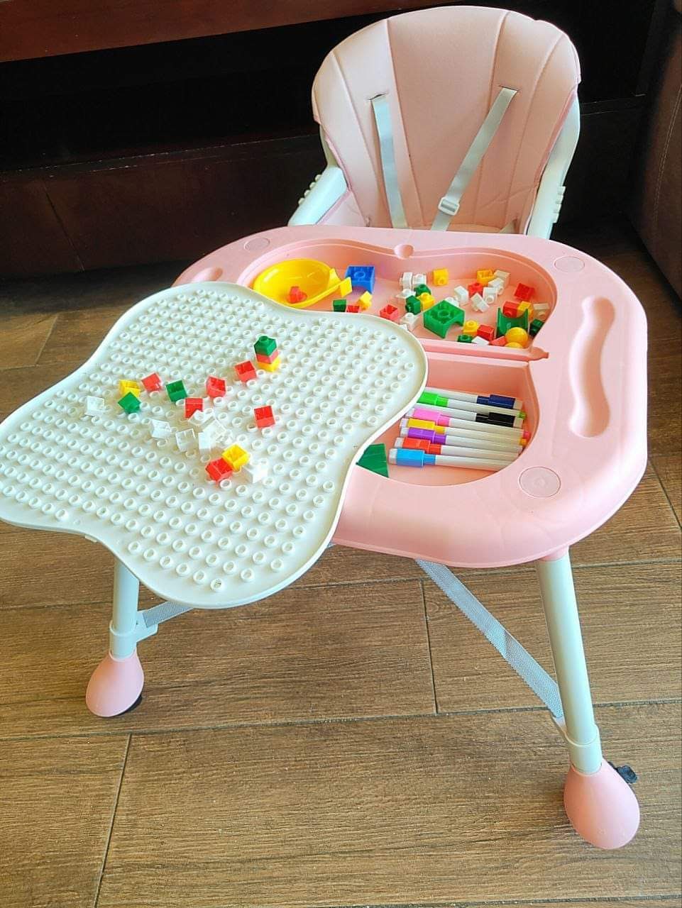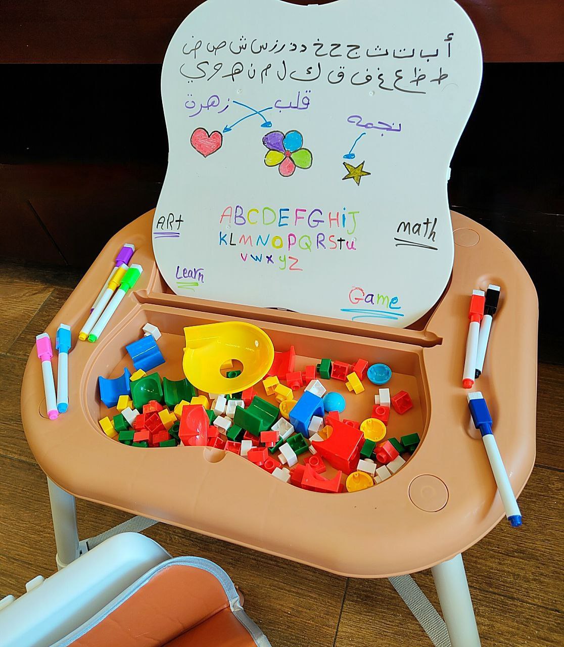 كرسي طعام ببار العاب وعجل ومستويات وطرابيزة للرسم