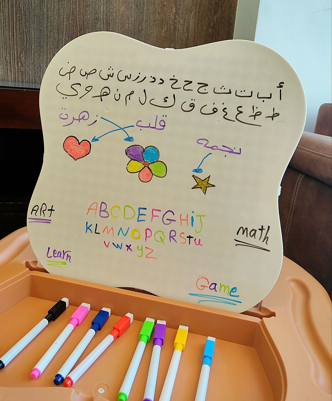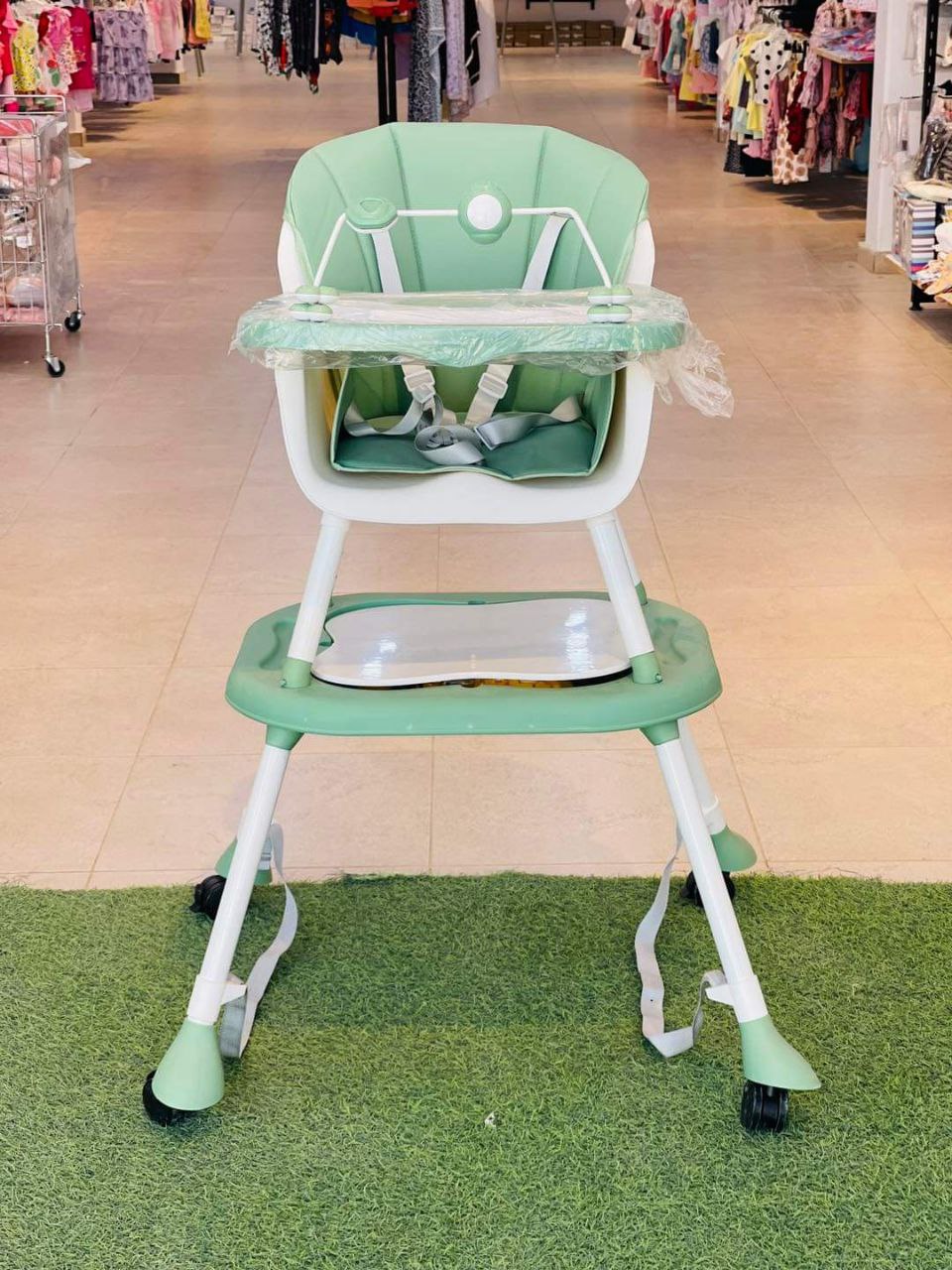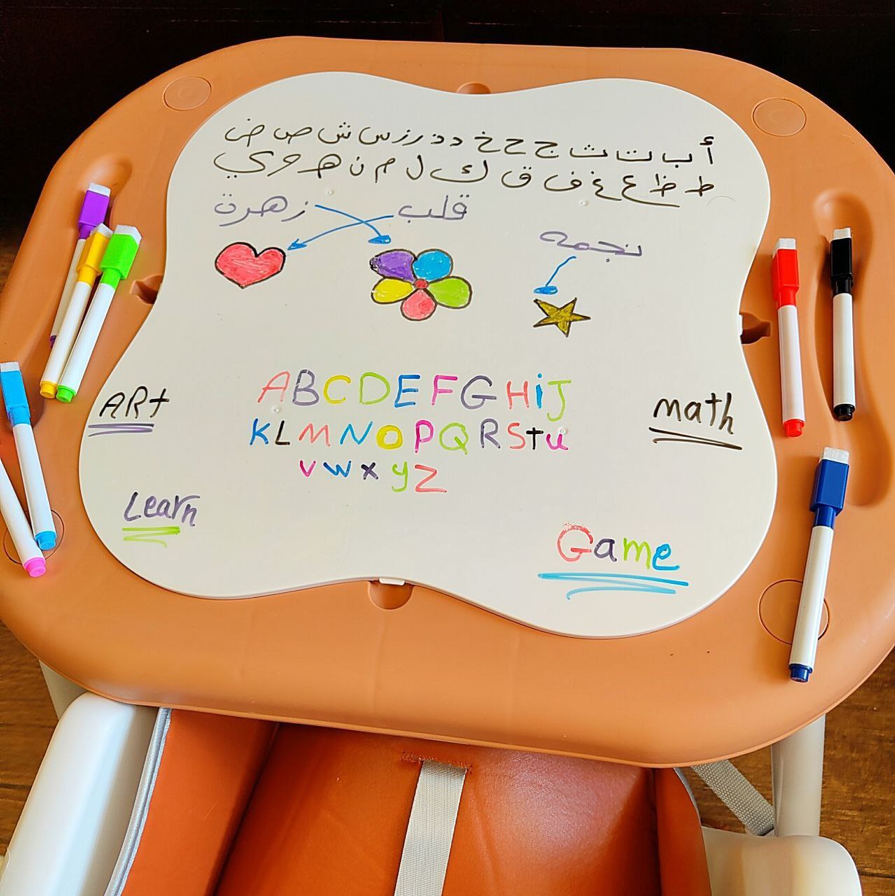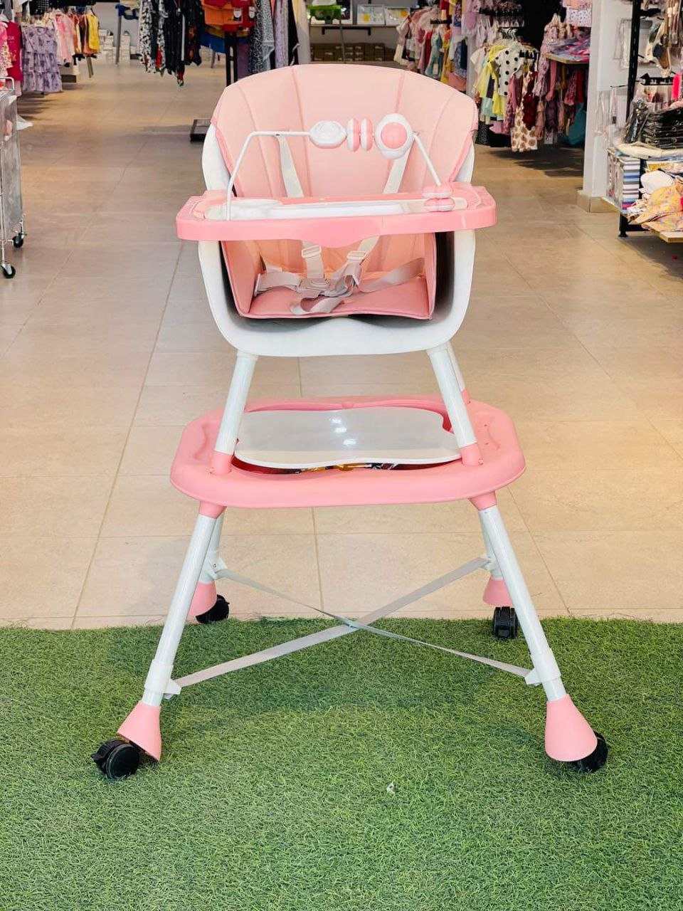 كرسي طعام ببار العاب وعجل ومستويات وطرابيزة للرسم