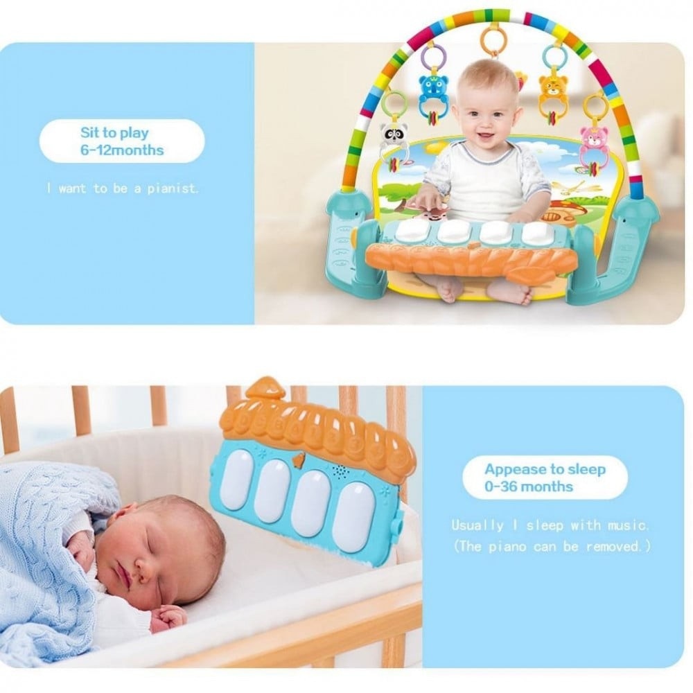 يمكن إزالة البيانو من مفرش اللعب ويمكن تعليقه في سرير الطفل أثناء استخدام كنز نوم الطفل.